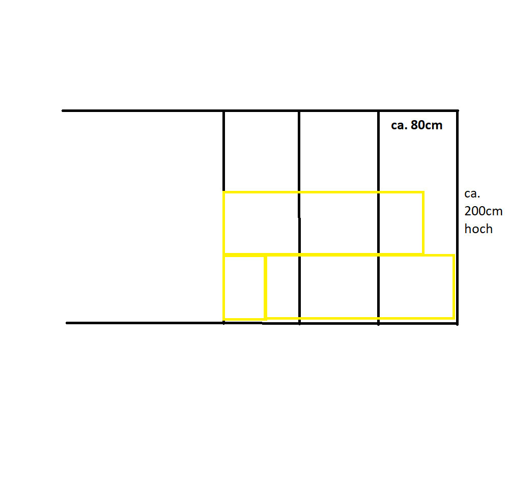 - An zwei Seiten sollen an der Wand Sachen befestigt werden. (Zur Not könnte man versuchen, die Befestigungen so zu platzieren, dass man die Holzständer erwischt.
