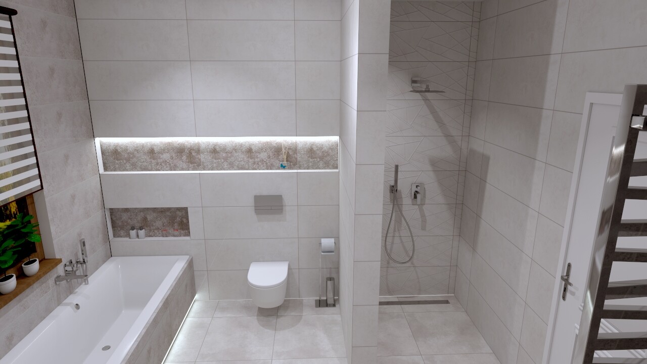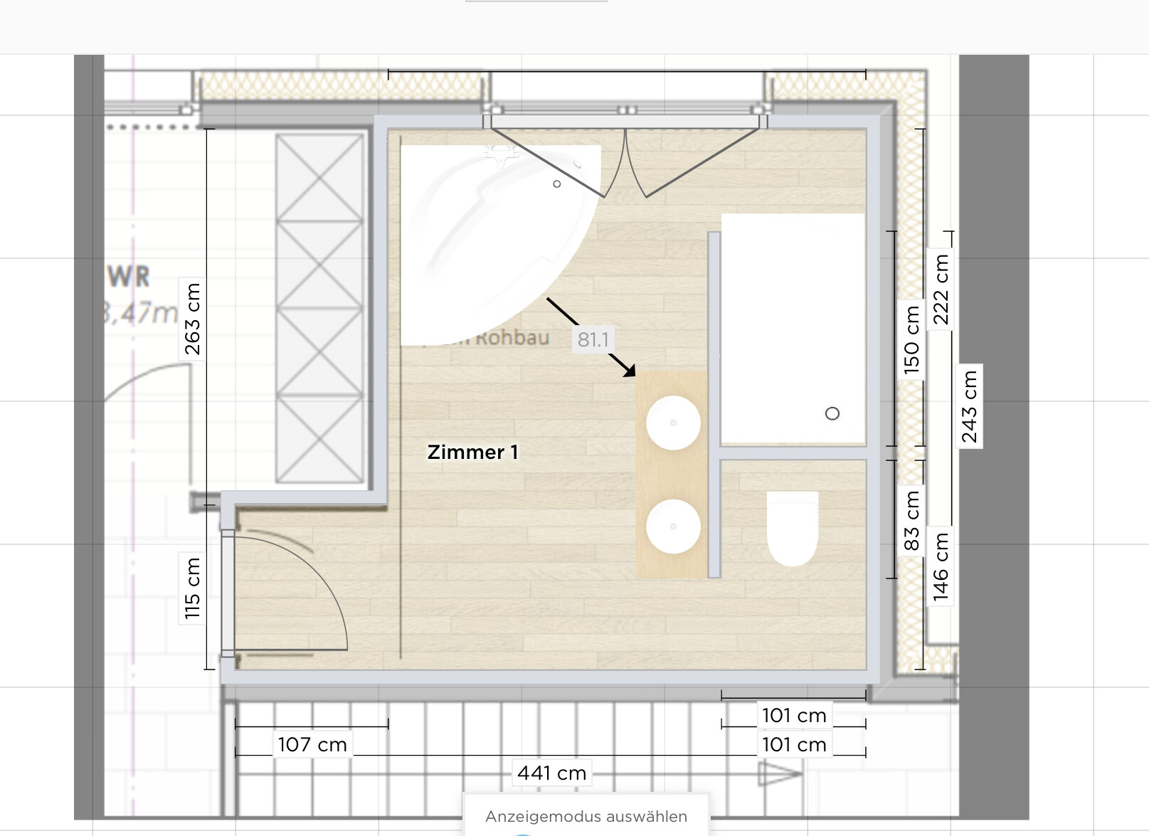 Was ich generell nicht verstehe: Ihr habt doch gerade gebaut, da hast du doch sicher gerade ein Bad geplant. Gefällt dir das nicht mehr? Warum übernimmst du das nicht, vielleicht mit ein paar kleinen Änderungen, die dir besser gefallen würden?Nee das Bad aus dem aktuellen Haus hat Optimierungspotential. Wir haben hier ja starke Dachschrägen, im neuen Haus aber nicht. Was wir vermutlich übernehmen ist die Wanne und die Fliesenauswahl. Aber die Aufteilung an sich ist in diesem Bad etwas aus der Not geboren alles unterzubringen trotz schrägen. Entsprechend steht die Dusche entwas unglücklich mitten im Raum rum, dahinter ist eine Nische. Ist zwar praktisch um Wäschekorb zu verstecken, aber auch sehr dunkel. Würde ich so nicht nochmal machen.