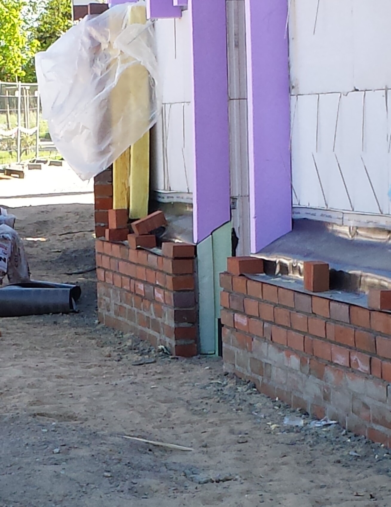 bin heute an einem Baugebiet vorbeigefahren und da ist mir aufgefallen, dass hier bis zu einer bestimmten Höhe angeschrägte Polystyrolplatten (?) gegen den Kalksandstein gedämmt wurden. An der Kannte ist dann eine Folie ans Mauerwerk angebracht und diese wird bis zum Klinker hin gezogen und auf ihr dann weiter verklinkert. Ich habe es auch schon gesehen, dass bis unten hin die Mineralwolle gestopft wurde.