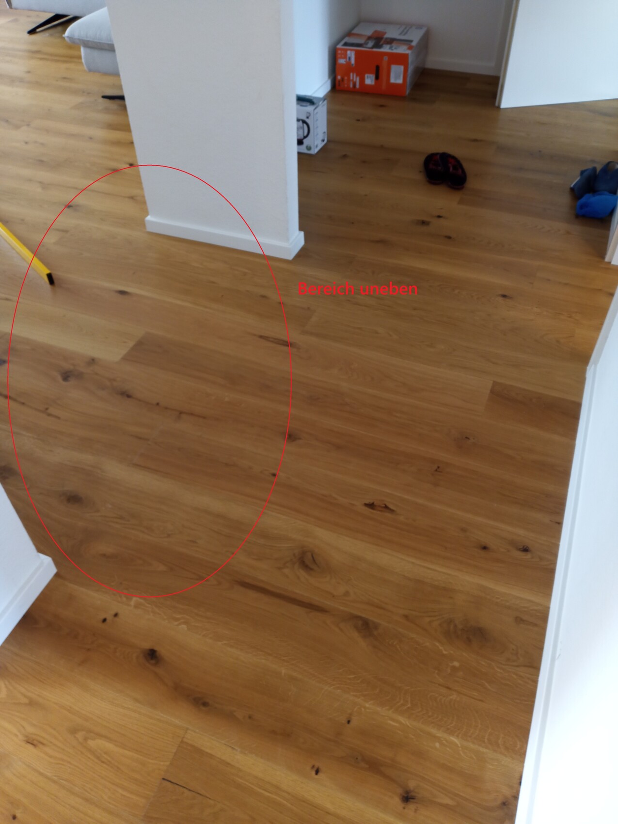 Was mich an der ganzen Angelegenheit stört ist, dass ich eine ordentliche und saubere Leistung erwartet habe, es jedoch zu mehreren unschönen Stellen gekommen ist. Auch nachdem eine Unebenheit ausgebessert wurde und die Sockelleisten erneuert wurden, finde ich immer wieder neue unschöne Stellen. In fast allen Räumen sind Unebenheiten, die aber noch in der Norm sind.
