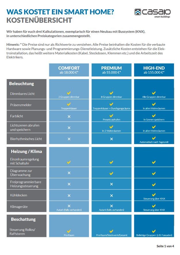 Als ich dann mal im Internet recherchiert habe, fand ich teilweise auch Kostenrahmen, die in diese Richtung gehen. Siehe Anlage! Zwar steht da auch eine "Comfort-Version" für 18.000 € aber die kann ja gar nichts! 155.000 € für das Highend Paket, wovon auch einige Punkte denke ich sinnvoll sind.