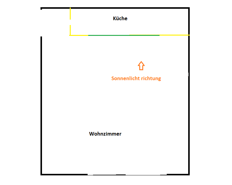 Hallo, ich habe vor eine Wand zu bauen und bin am Überlagen, ob Porenbeton (YTONG) eine gute Idee ist. Es geht um folgendes - ich habe ein relativ großes Wohnzimmer (35 Quadratmeter) wo auch die Küche rein sein soll. Ich möchte aber die Küche mit einer Wand trennen (im Gelb auf das Bild) , damit der ganze Geruch vom kochen nicht direkt in die Wohnzimmer kommt.