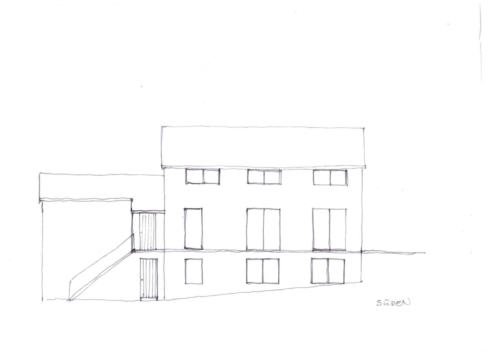 - Außenansicht: So wirkt die Südfassade stimmiger und auch die Dachneigung gefällt uns besser.