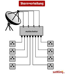 Die Sternverteilung kann man auch für das Kabel TV nutzen. Dann wird nur ein anderer Verteiler verbaut,