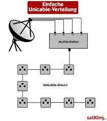 Satellitenanlage mit Unicable-Verteilung und Multischalter im Haushalt