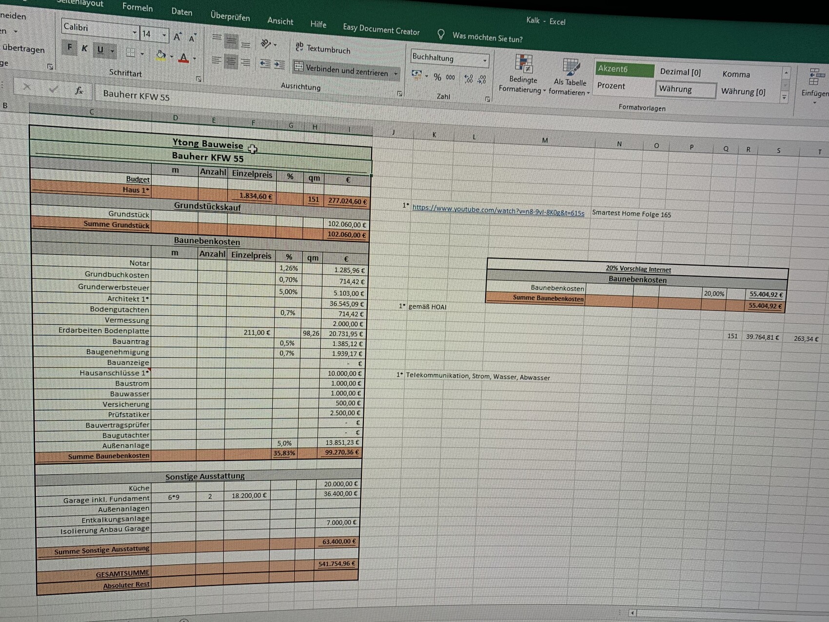 - Außenanlange (Garten könnt ihr auch später machen) müsst ihr trotzdem um die 15.000€ rechnen, wenn ihr hier n bisschen was selber macht. Ansonsten kann der Betrag auch Ruckzuck auf 25.000€ gehen!! Unbedingt beachten!