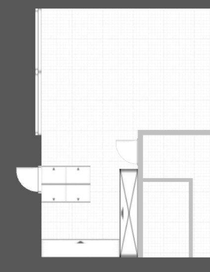 hier nur mal grob, planrechts passen max 5 x Hochschrank, eine kleine Insel, Zeilenabstand nach planunten 120cm.