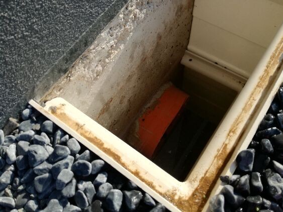 Auf Grund der Wetterlage in den vergangenen Tagen kam es immer wieder vor, dass der Schacht mit Wasser gefüllt war. Das Wasser floss weiterhin auch in das entsprechende Zuluftrohr. Ich vermutete erst den Zulauf durch Regen. Als ich jedoch das Wasser entfernte und am Folgetag erneut kontrollierte, konnte ich einen erneuten Anstieg des Wassers vernehmen. Es fiel mir auf, dass der Schacht an sich nach unten hin nicht geschlossen ist. Meine Vermutung ist, dass das Wasser von unten hineindrückt.