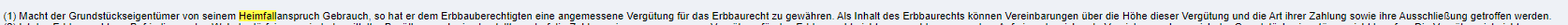 Hallo....ist dem Erbbauberechtigten eine angemessene Vergütung zu zahlen.