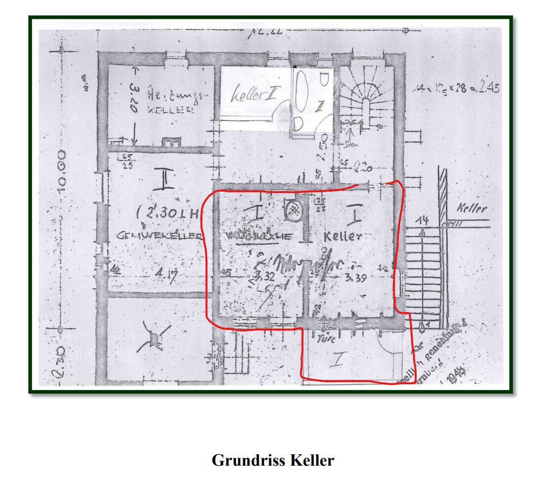 - 1x Keller (rot markiert die beiden bewohnbaren Zimmer)