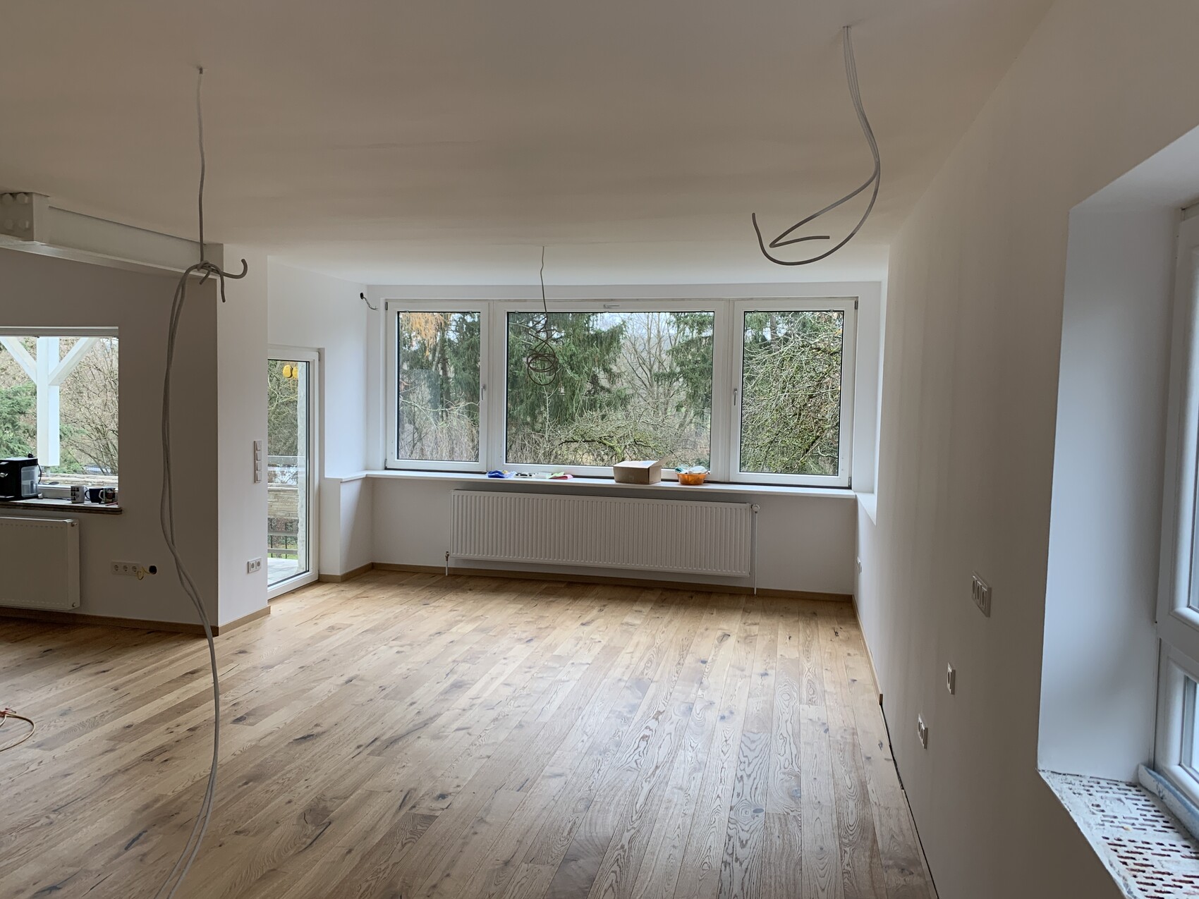 Nach den Renovierungsarbeiten sind wir letztes Wochenende umgezogen. Es fehlen noch die Küche, 2 Innentüren, Elektrik (Mittlerweile 90% fertig, Medienschrank wird gerade finalisiert) und die letzten Sockelleisten.