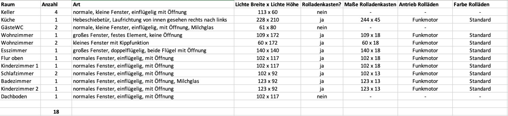 Das Angebot beinhaltet alle Rollläden und Funkmotoren. Preise in brutto.