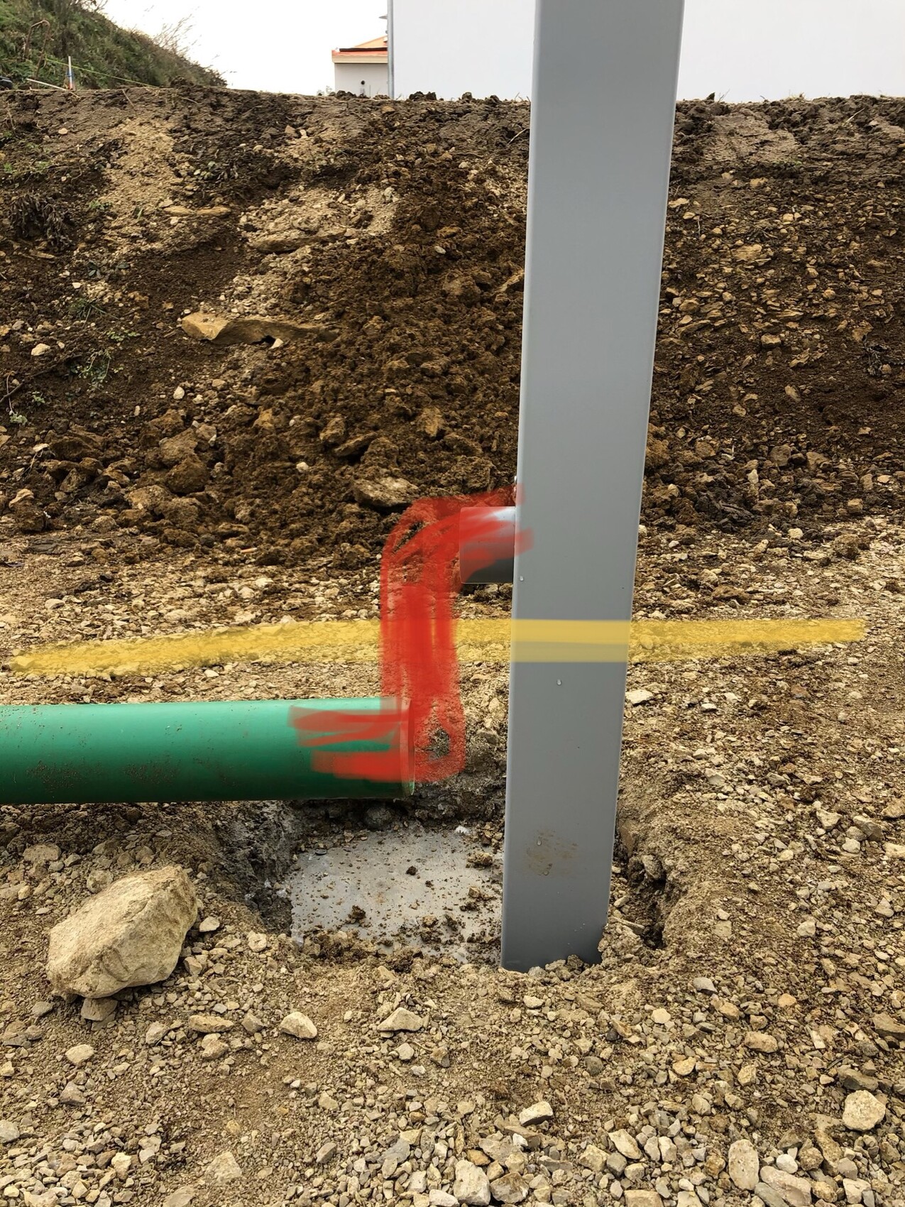 Hat jemand ne Idee, wie ich das mit dem Regenabfluss machen könnte? (Ist ja 10cm über OK)