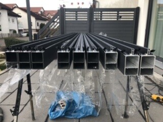 Gruß aus dem Schwabenländle!Wie wurde zwischen Wandprofil und Hauswand abgedichtet? Sind die Fundamente der Pfosten frostsicher und ausreichend dimensioniert (z.B. 40x40x80) ausgeführt worden? Sind die Pfosten zusätzlich gesichert im Beton, z.b. über einen verschraubten Pfostenschuh? Gab es Kabel zu verlegen und anzuschließen - wenn ja, wurde das durch eine Elektrofachkraft durchgeführt? Sind die verwendeten Kabel für diesen Einsatzzweck zugelassen? Sorry für die vielen Fragen...