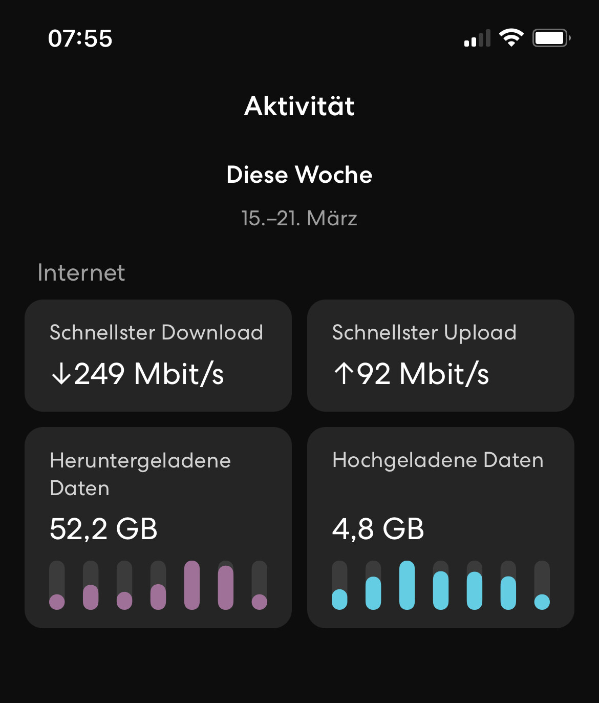 Wir haben Sichtverbindung zu einem 4G/5G Mast (ca. 2km entfernt) und weniger als 220 Mbit down / 75 Mbit up habe ich noch nicht gemessen...