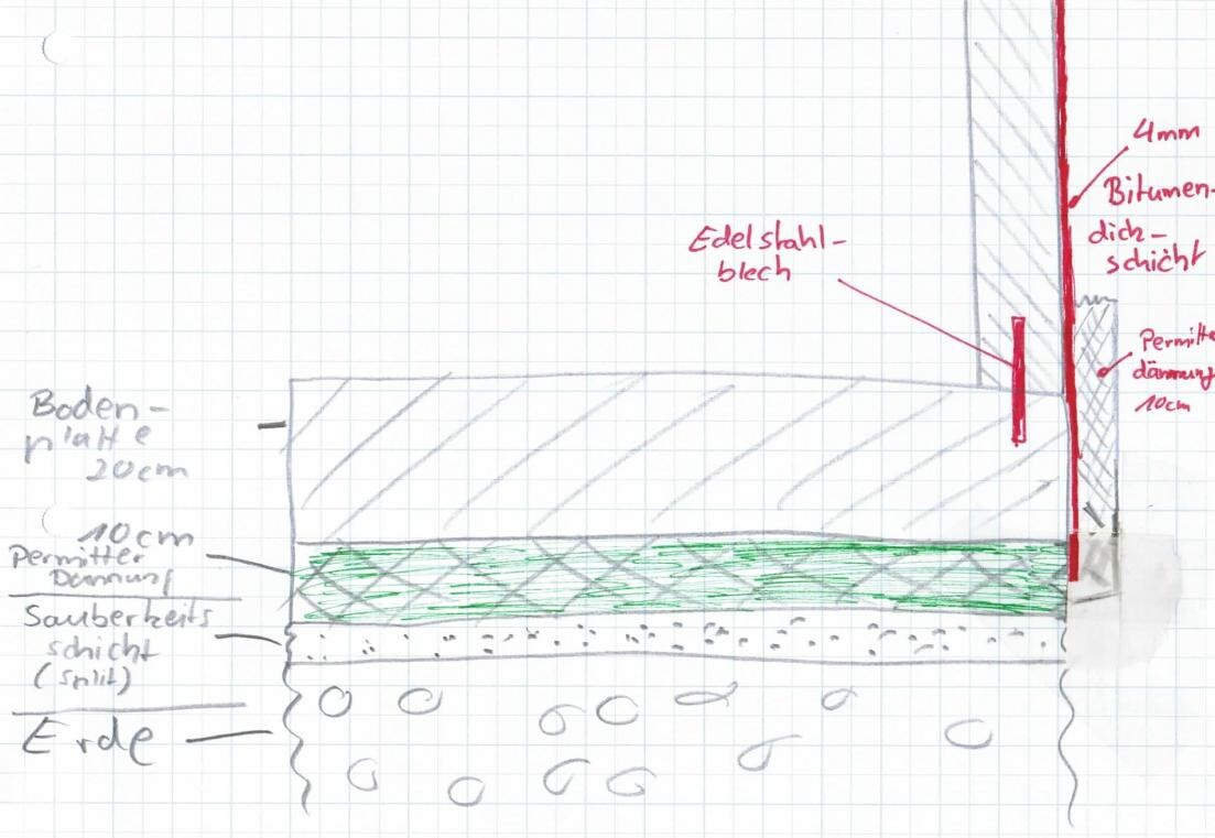 Doch bevor ich damit beginne bräuchte ich die Rückmeldung ob die Abdichtung der durch die Baufirma korrekt ausgeführt wurde. Anbei mal ein paar Bilder zum Aufbau + Beschreibung.