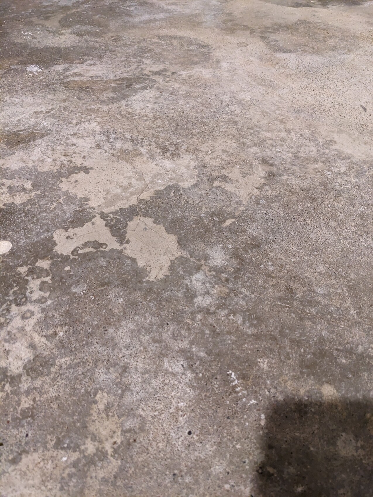 Oberfläche eines abgenutzten Betonbodens mit Verfärbungen und Abplatzungen
