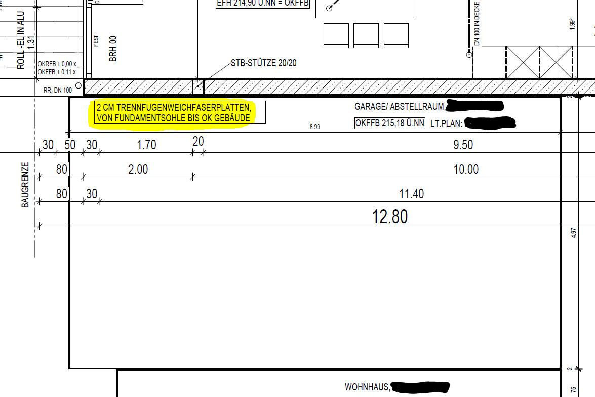 - zwischen der angrenzenden Garage und unserem Wohnhaus wurden 2-4 cm Trennfugenweichfaserplatten verwendet
