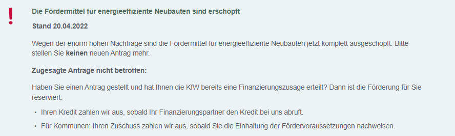 ᐅ KfW BEG Förderung gestoppt 261, 262, 263, 264, 461, 463, 464