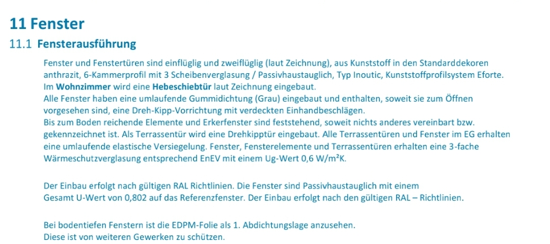 Bei den Fenstern steht in der Planung "3fach-Verglasung Ug 0,6", beim Satteldach steht "24cm Dämmung WLG035". Hört sich eigentlich ganz gut an.Das steht bei uns. Merkwürdig das bei Euch kfw55 so knapp ist.