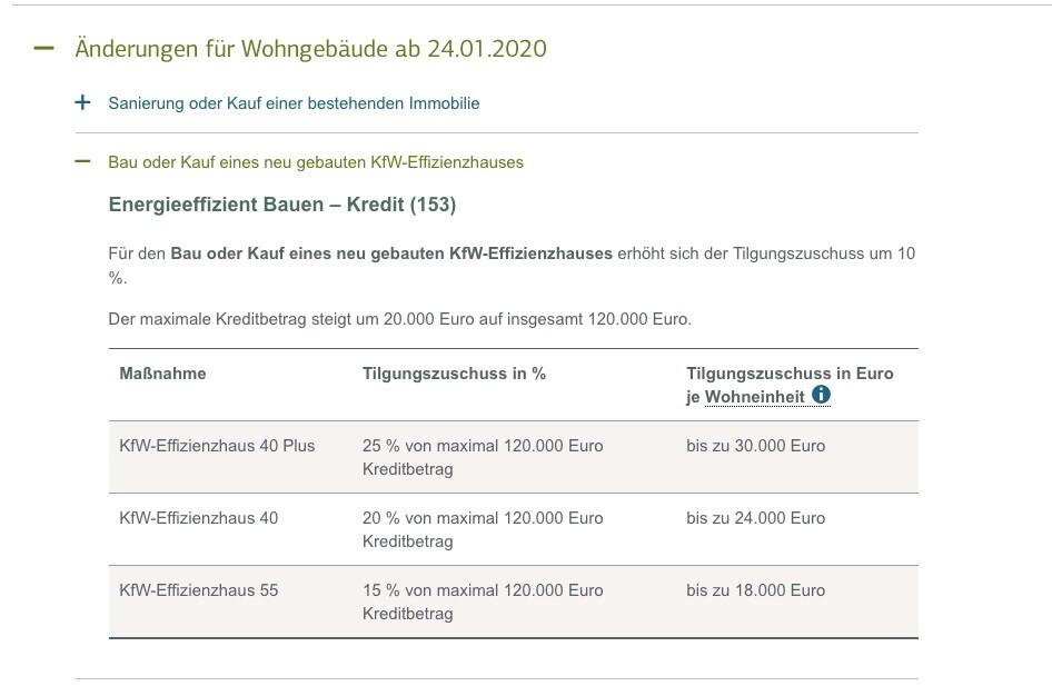 So profitieren Sie zum Beispiel ab dem 24.01.2020 in vielen Produkten von höheren Tilgungs- und Investitionszuschüssen sowie Kreditbeträgen.