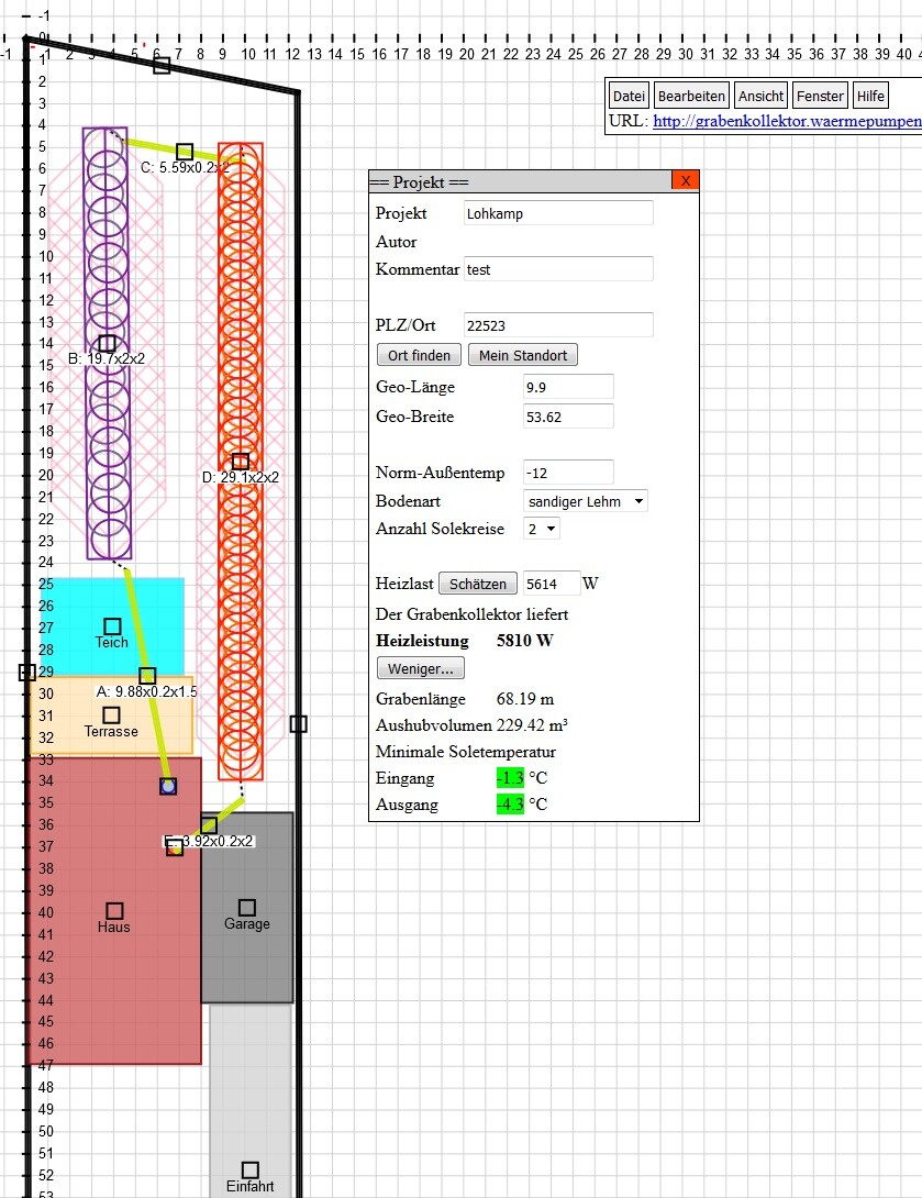 Im Anhang habe ich versucht, das Ganze einmal laienhaft mittels Grabenkollektor umzusetzen. Würde das so gehen?