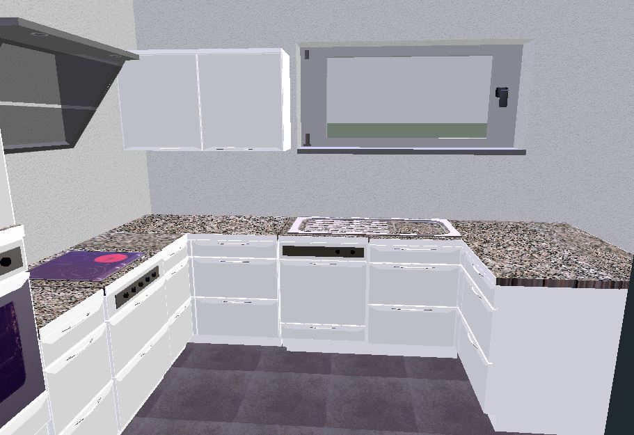 3-Meterwand: 1 x 30, 1 x 60, 1 x 40, 1 x 60, 1 x 40, dann kommt die Fensterzeile in der Breite von 3 x 60, dann die Insel mit einem Schenkel von 60cm