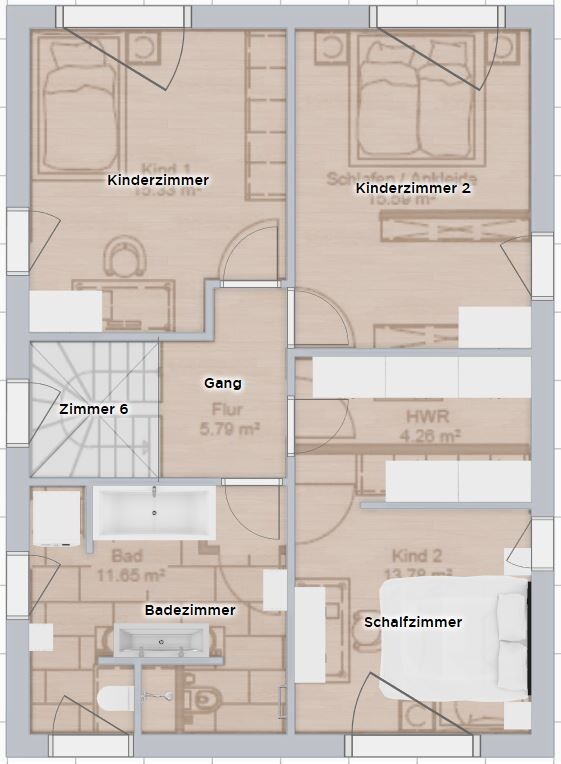 Noch ein Vorschlag: Bad kleiner, Ankleide streichen, Schrank dafür mit ins Schlafzimmer und dann kleiner Hauswirtschaftsraum nach oben. EG bleibt.