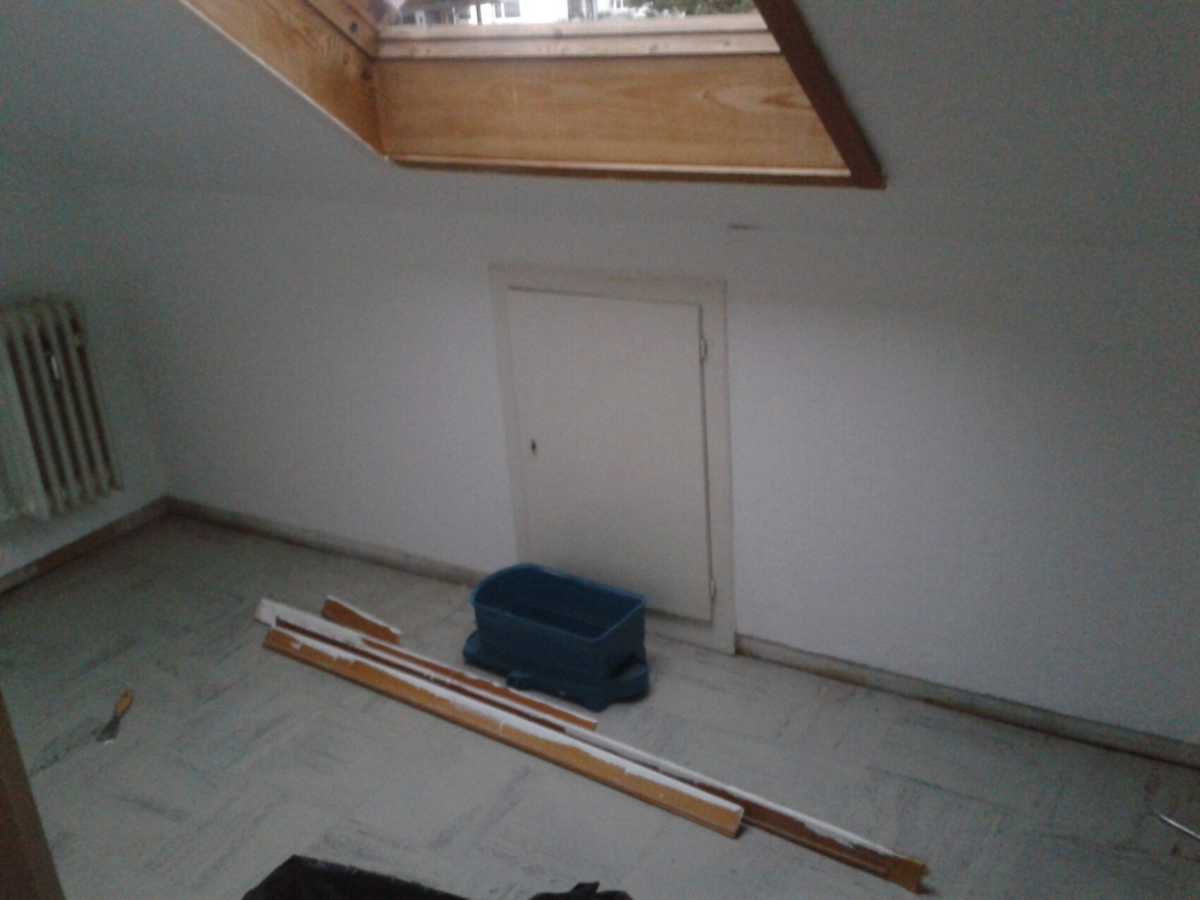 Die Bilder zeigen diese Dachräume von innen (und die kümmerlichen Versuche des Vorbesitzers, da was zu dämmen; das beseitigen wir noch) und die Luke von außen.