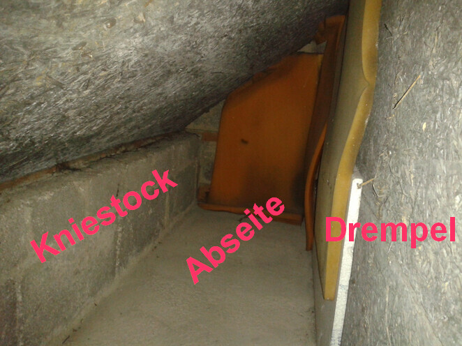 Nun möchten wir die Kniestöcke dämmen. Und zwar von außen, also nicht innen zum Zimmer hin, sondern zum Dachraum hin.