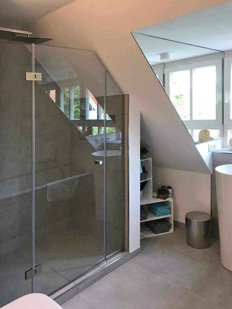 Badezimmer sehe ich eigentlich keine Probleme. Mit den richtigen Ideen beim Abmauern kann man das super schön machen. Gib einfach mal ein "Wanne unter Schräge. Evtl kann man auch direkt ein Fach mit mauern. Foto ebenfalls dabei... Ideen gibt es auf jeden Fall genug. Auch die Dusche unter die Schräge wäre ne Idee... Ich würde mir da nicht so viele Sorgen machen.