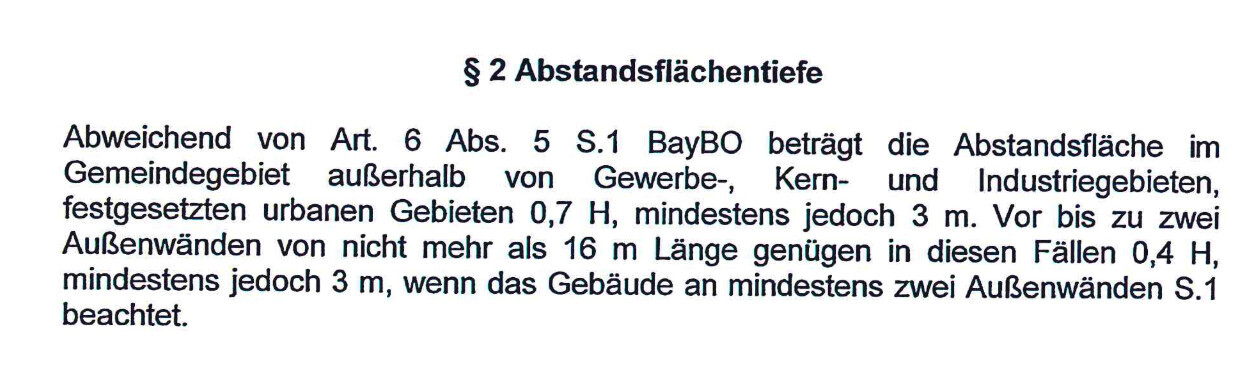 der ist tatsächlich schon (leicht) unterschritten. Die Nachbarn haben mir hierzu auch schon eine Abstandsflächenübernahme von 17cm unterschrieben. Für mich sieht es so aus, als ob ganz generell einfach eine 3m Linie an der Grenze angelegt werden darf. Und die Höhe des Hauses in diesem Fall zu vernachlässigen ist. Unser Gemeinde hat dafür eine eigene Satzung (screen)