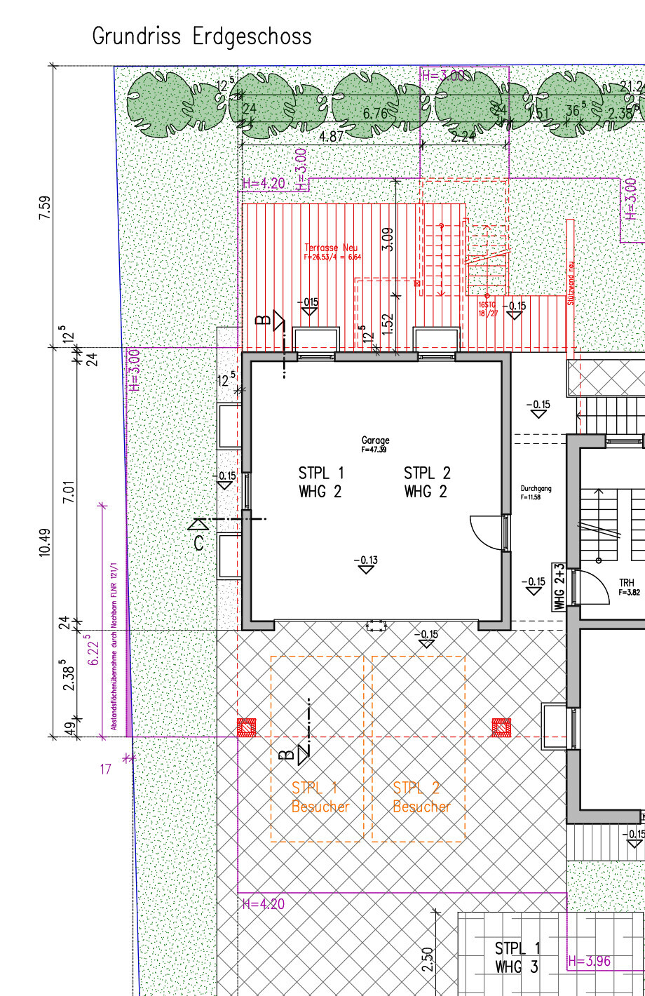 0,7 ist ja dann noch schlechter. 7,25* 0,7 sind dann 5,075 m Abstand. Die 3 m sind mind. Abmessungen nich max. Abmessungen. Ausser im Bebauungsplan steht etwas Anderes.