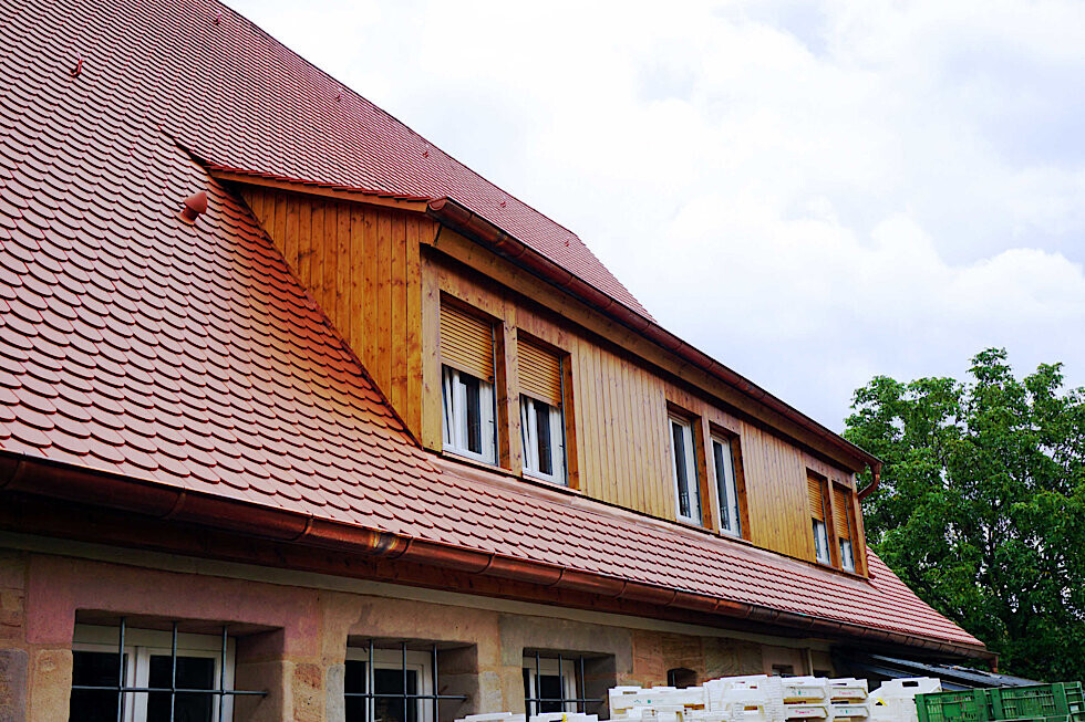 Man kann aber auch mit einer Verblechung eine Dachziegelreihe tiefer gehen.