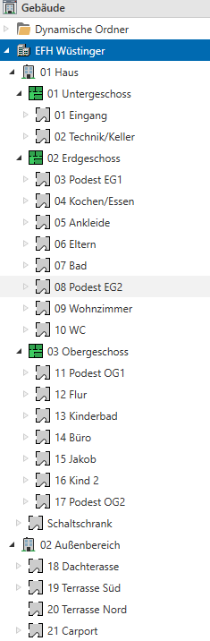 Für die PAs brauchst Du eigentlich gar keine Struktur. Man kann die Geräte zwar irgendwie gruppieren/sortieren, aber spätestens bei der nächsten Ergänzung ist damit dann auch Essig.Habe da jetzt einfach erstmal 5PA pro Raum genommen.Meistens ist es eh nur ein Präsenzmelder und manchmal noch ein Taster.
