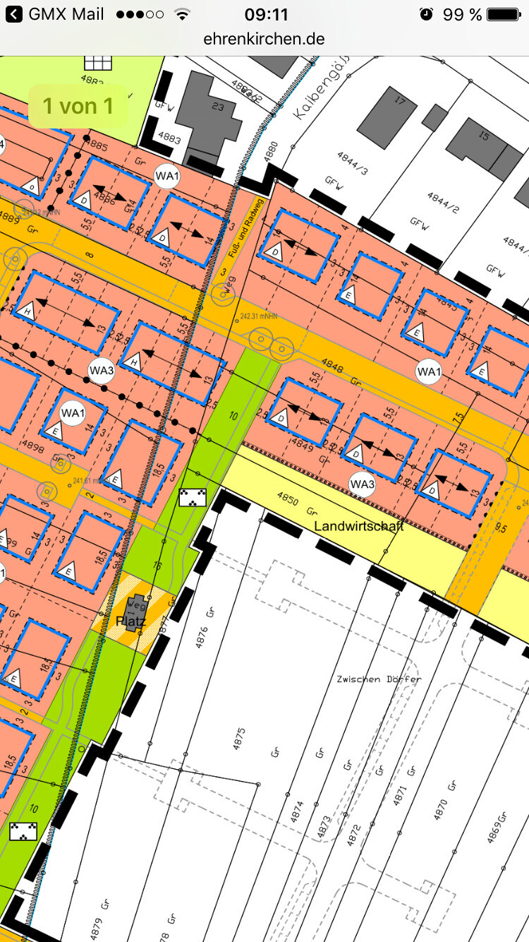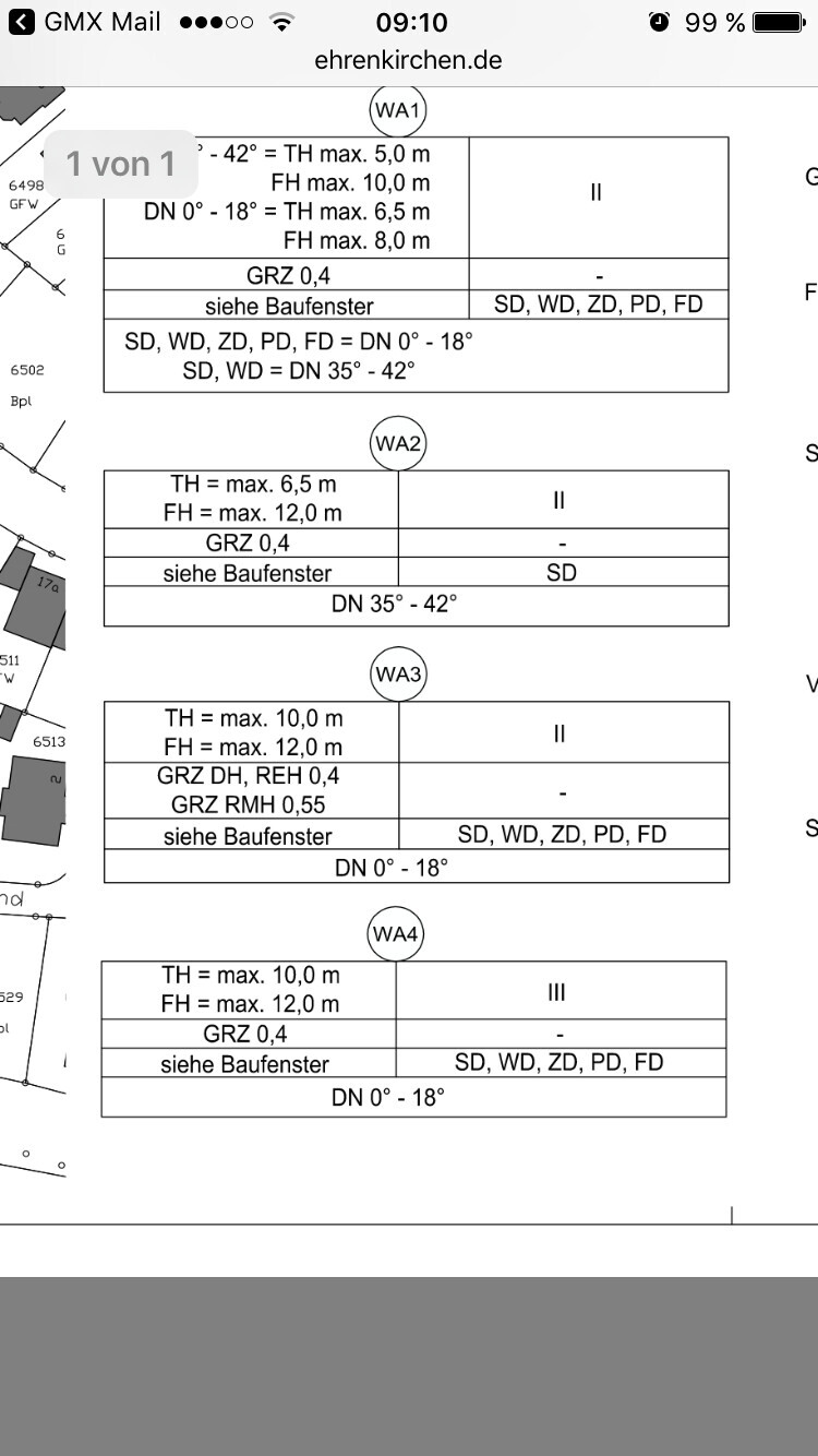 Was gestern uns und dem Architekten stutzig gemacht hat ist folgendes. In WA 2 sind 2 Vollgeschosse möglich mit TH6,5m soweit passt das. Nun gibt es aber im WA 3 5 Grundstücke mit unter Reihenhäuser und Doppelhäuser die eine TH von 10 m erlauben. Jedoch auch nur 2 Vollgeschosse.
