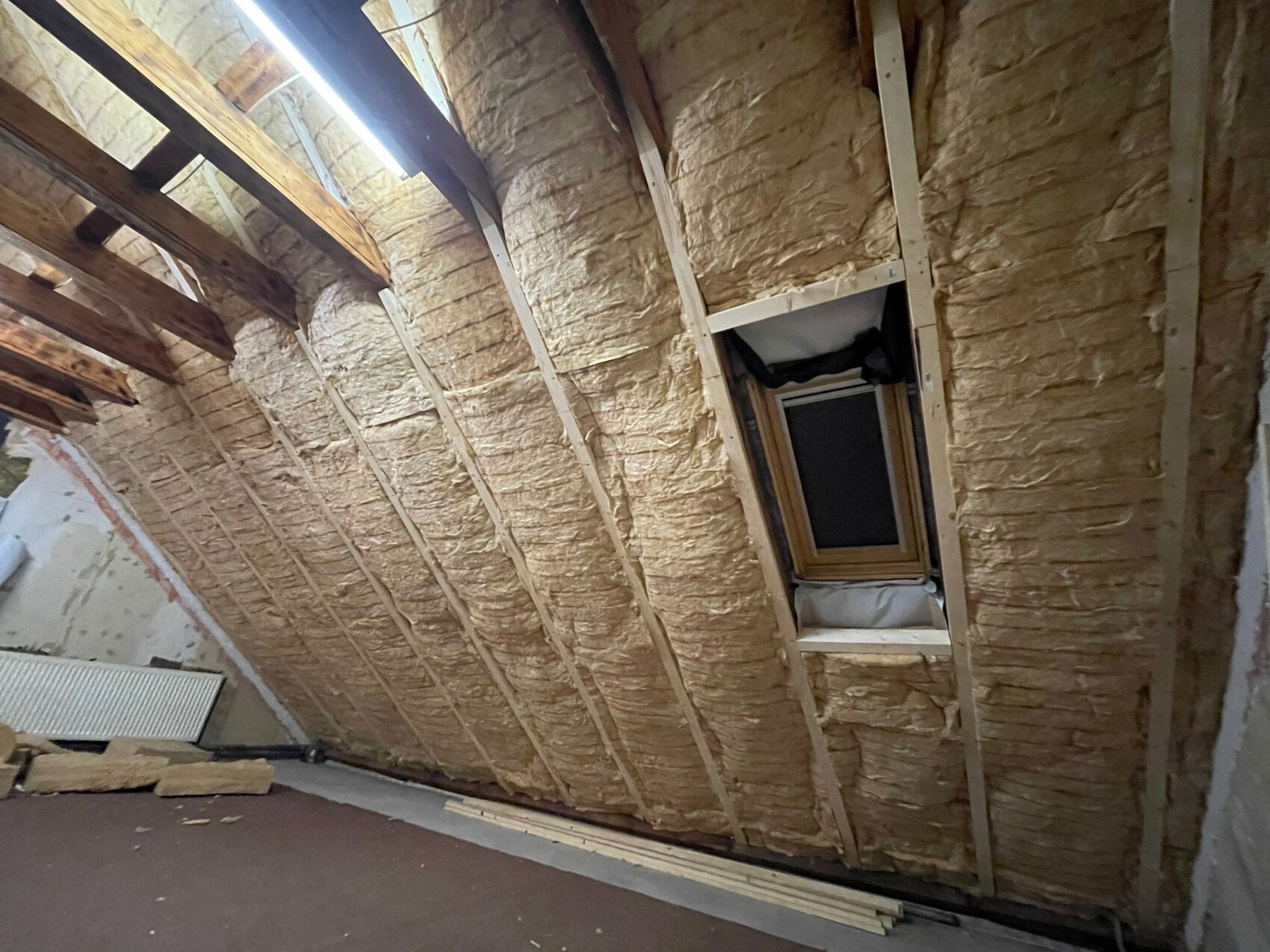 Das wird der große Fehler gewesen sein... Uns war nicht bewusst, dass die Dampfbremse zu diesem Zeitpunkt schon wirklich final dicht, dicht, dicht sein muss und sich durch verschiedene physikalische Prozesse die Feuchtigkeit regelrecht nach oben saugt. Aber erst einmal weiter: