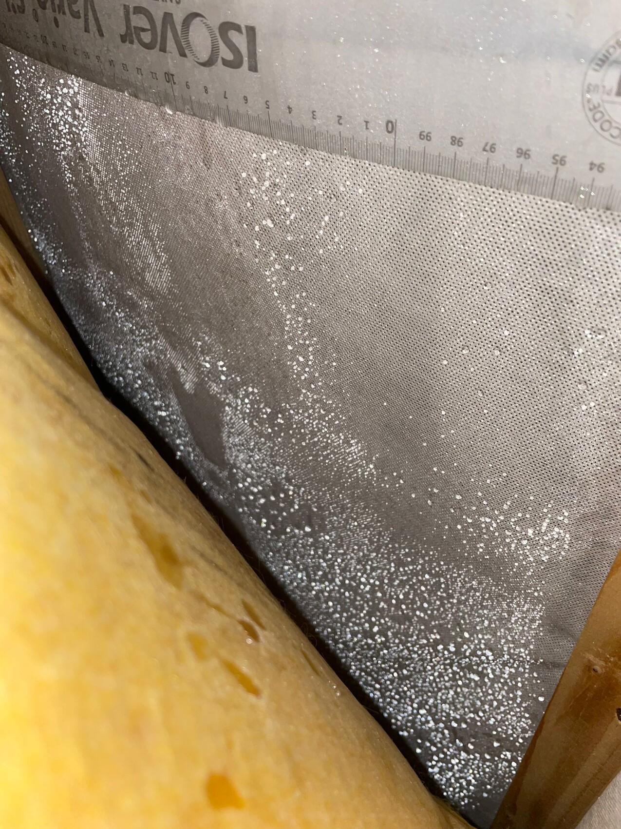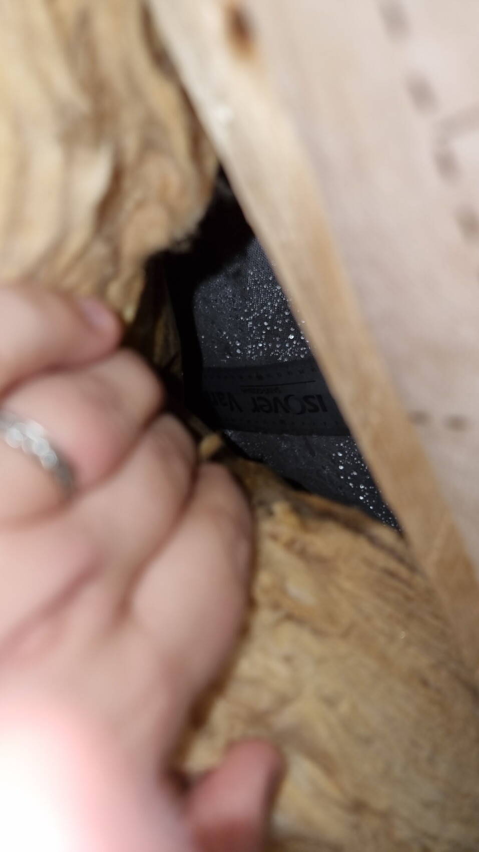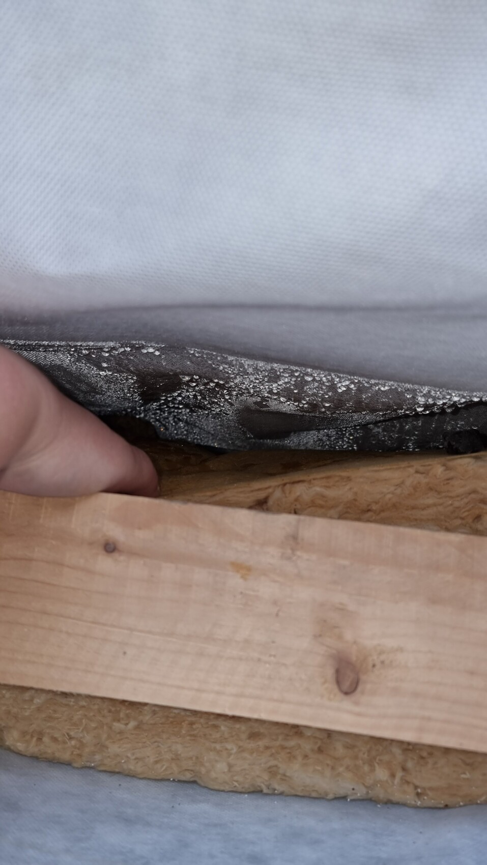 Dann habe ich weitergeschaut und festgestellt, dass sich wirklich überall auf der USB dicke Wassertropfen befanden. Habe einen Schlitz mitten in der Dachfläche gemacht, Dämmwolle weggeschoben und reingeschaut, auch dort.