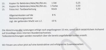 Telefonate mit mir, dem GU oder E-Mails werden ebenfalls nach Zeitaufwand in Rechnung gestellt.