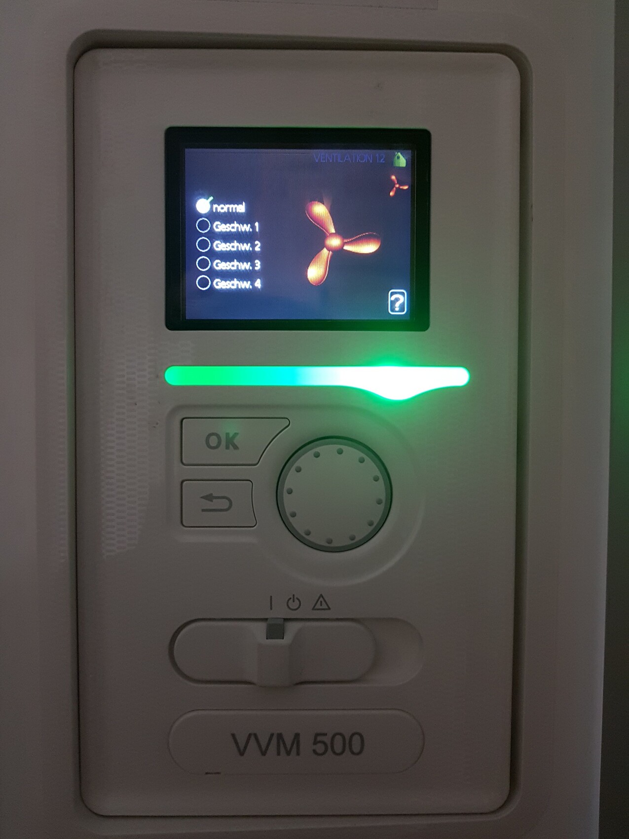 Die belüftete Wohnfläche sind 165 qm. Ja die Lüftungsanlage ist von Nibe. Das steht darauf. Man kann an der Innenheit der Wärmepumpe wählen auf welcher Stufe die Laufen soll. Wir haben sie fast immer auf normal. Da macht die schon gut Lärm. Schätze das sind ca. 70%. Aber die Luft in den Räumen ist irgendwie trotzdem verbraucht. Also gefühlt zumindest. Aber das liegt vielleicht auch daran, dass das Haus noch so neu ist?