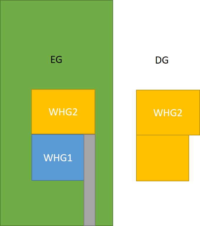 Wie von geschrieben hat WHG2 im EG nur Küche und Esszimmer, evtl. auch der Wohnbereich (je nach Größe WHG1). Der Wohnbereich (TV, chillen) von WHG 2 könnte aber auch im DG sein, mit einer schönen Glasfront Richtung Garten oder falls gewünscht mit Südausrichtung und evtl. noch einem kleinen Balkon (also über WHG 1)