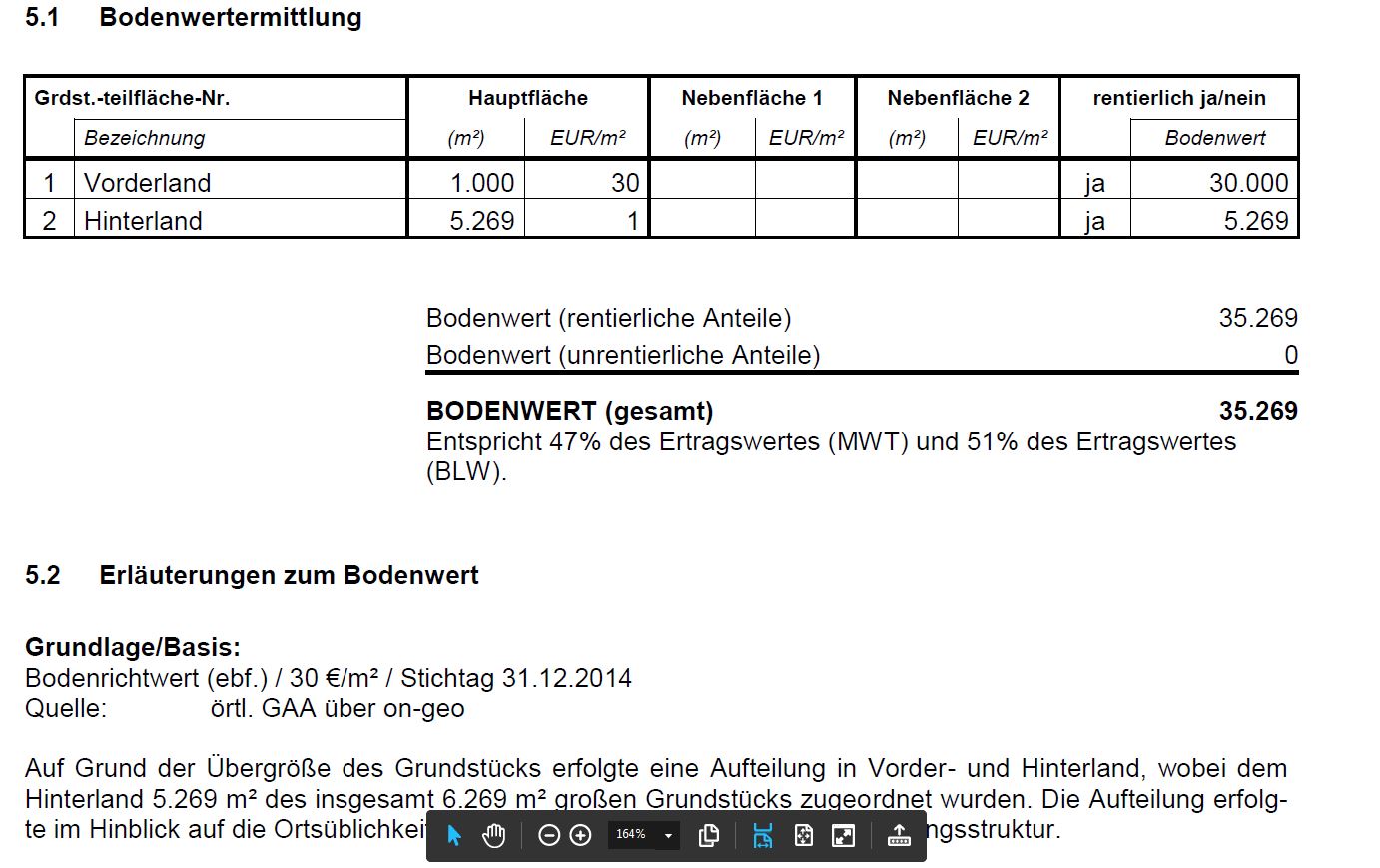 Im Gutachten ist ein Bodenrichtwert von 30€ genannt. Diese Fläche kann ergo keine Wertsteigerung um 30€ erfahren haben, sondern maximal um wenige Euro auf 30€ und ich tendiere stark zu der Annahme, dass sich am Bodenrichtwert in der Gegend in den letzten 10 Jahren gar nichts geändert hat.