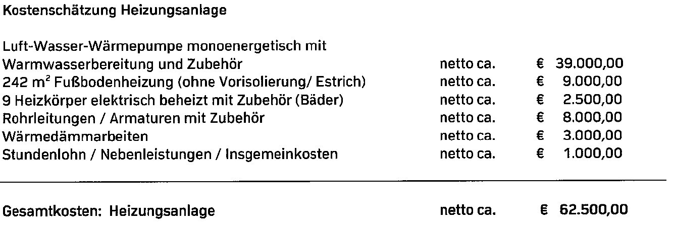 Die entsprechenden Schätzungen sind anbei, insbesondere der für die LWWP veranschlagte Betrag kommt mir sehr hoch vor, wenn ich hier im Forum vergleiche - was haltet Ihr von den anderen Werten?