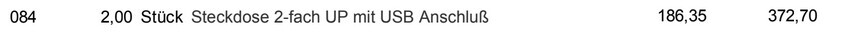 Tja, was soll ich sagen? Ich finde die Preise schon recht hoch gegriffen. Die UDHOME9 kostet leer zwar rund 500,- EUR, aber 400,- EUR für dreimal Schuko und (einmal?) Netzwerk finde ich ziemlich viel. Günstige USB-Steckdosen kosten ab ca. 10,- EUR, aber die Frage ist ja, ob Dein Elektriker Dir überhaupt irgendeine Alternative anbieten möchte.Ich probiere mal mit ihm drüber zu reden. Er macht bisher einen vernünftigen Eindruck. Die anderen Positionen wie Installation 1-fach Steckdose mit 31€ bzw. Installation eine Brennstelle mit 21€ finde ich in Ordnung. Zumindest habe ich viel „frechere“ Angebote für die gleiche Arbeit schon mal gesehen. Xingwei421 schrieb: