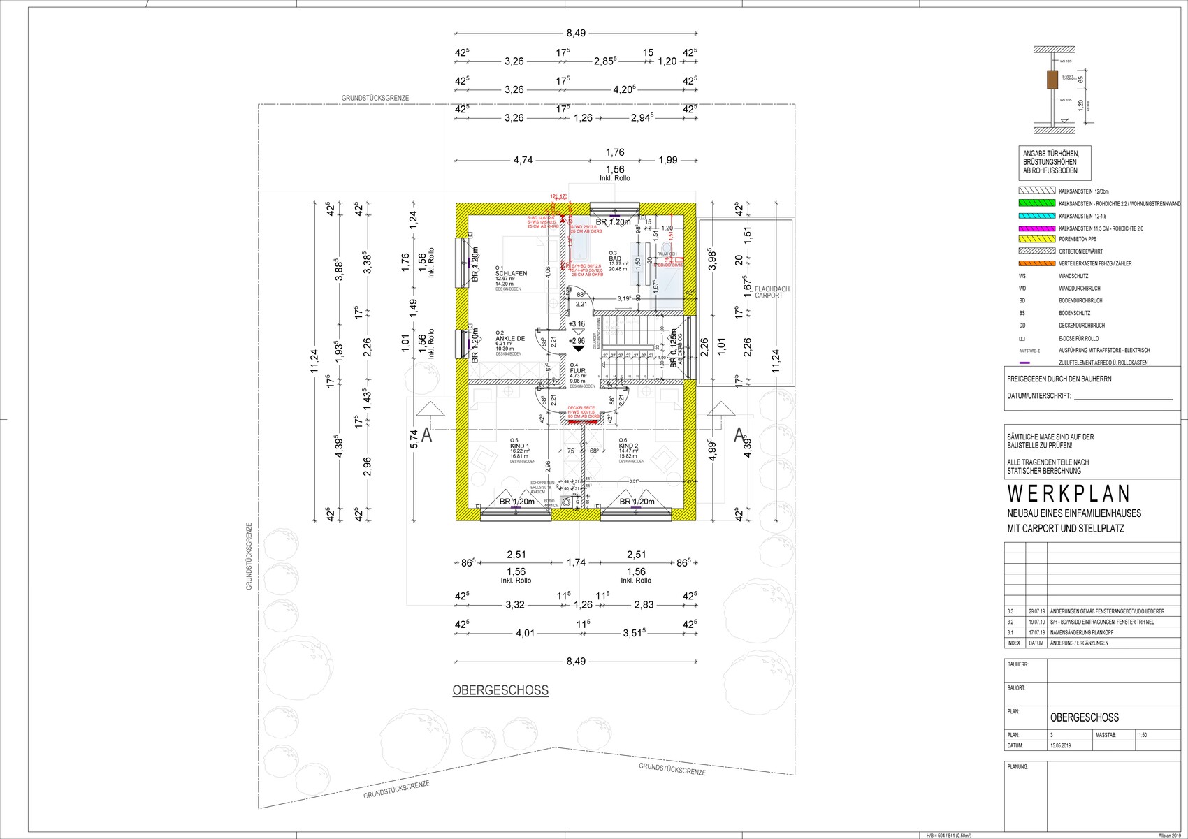 Das Bad oben wir noch etwas verändert. Die mittlere Wand des T-Stücks wandert weiter nach oben.