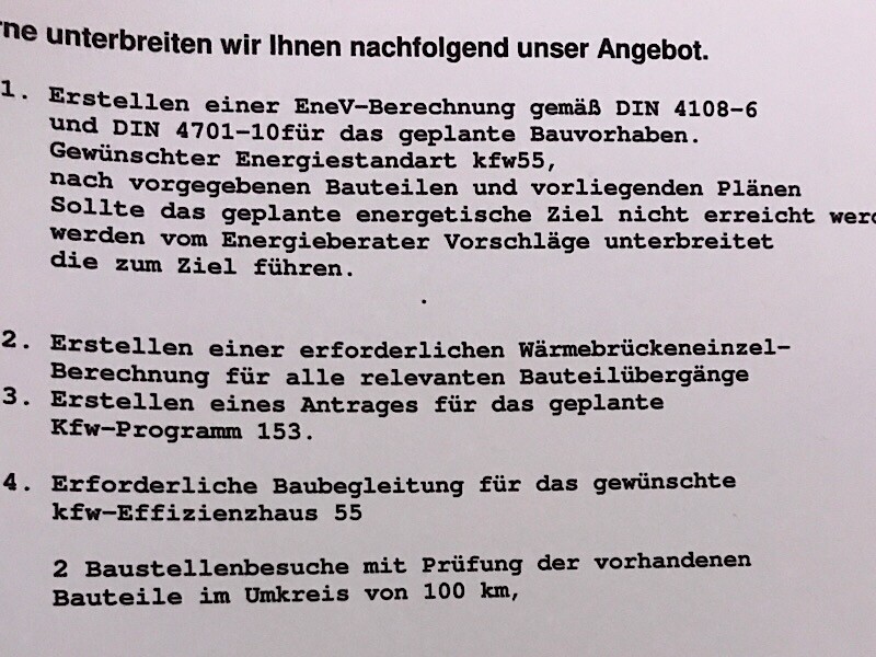 2200€ am EndeAnbei unser Angebot pauschal 3,5k€ für die Leistung aus dem Screenshot. Den Blow Door Test bekommen wir zusätzlich für 400€.