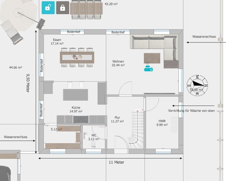- Haus mit ca. 9,50m auf 11m Außenmaße