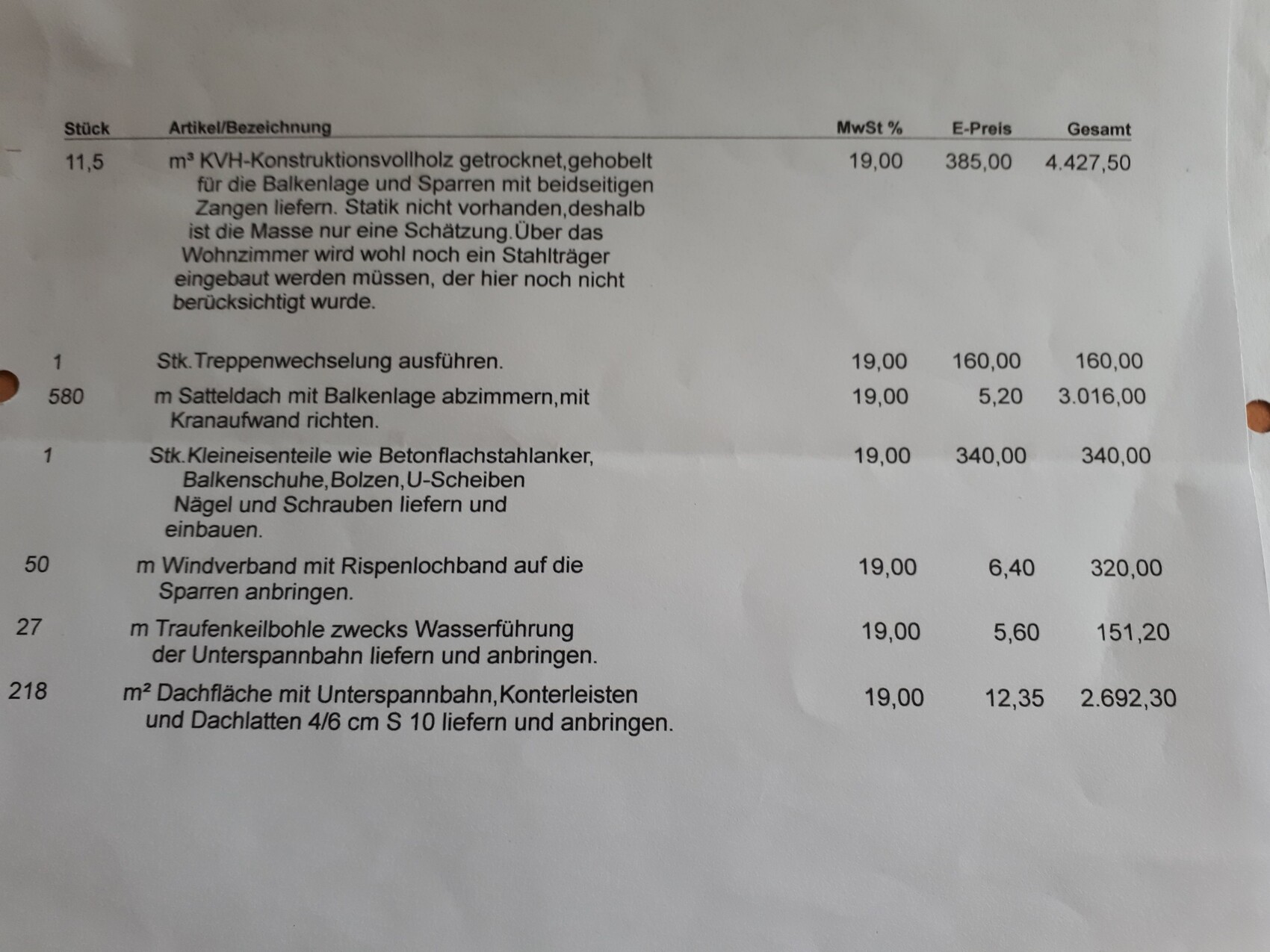 PS: der genannte Stalträger wird lt. Statik benötigt - das Angebot muss also noch einmal ergänzt werden.