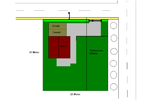 Dazu noch eine Garage sowie Carport. Hab es mal grob mit Paint aufgezeichnet: