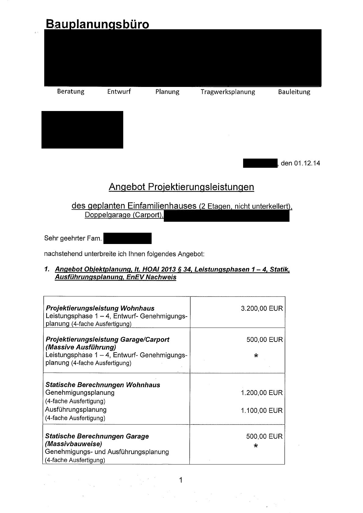 Sollte ich mir noch ein weiteres Angebot einholen oder ist das ein guter Preis? Wenn ich mich hier im Forum umsehe, lese ich von Kostenschätzungen die das 2-3 fache betragen. Von daher sollte ich wohl froh darüber sein. Bekannte von uns haben aber mit dem gleichen Bauplaner vor 4 Jahren ihre Stadtvilla (160qm) und alles gehobener Standard mit Doppelgarage geplant - und 6.500 Euro bezahlt. Bauplatz liegt Luftlinie vlt 2 Kilometer von unserem. Hatten also so ähnliche Kosten geplant. Haben die Preise in den letzten Jahren so "angezogen" (HOAI 2009 zu HOAI 2013)?
